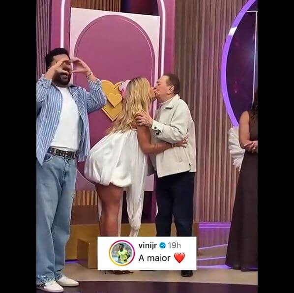 😂 Bạn gái hôn môi MC nam, Vinícius bình luận: Tuyệt nhất ❤️