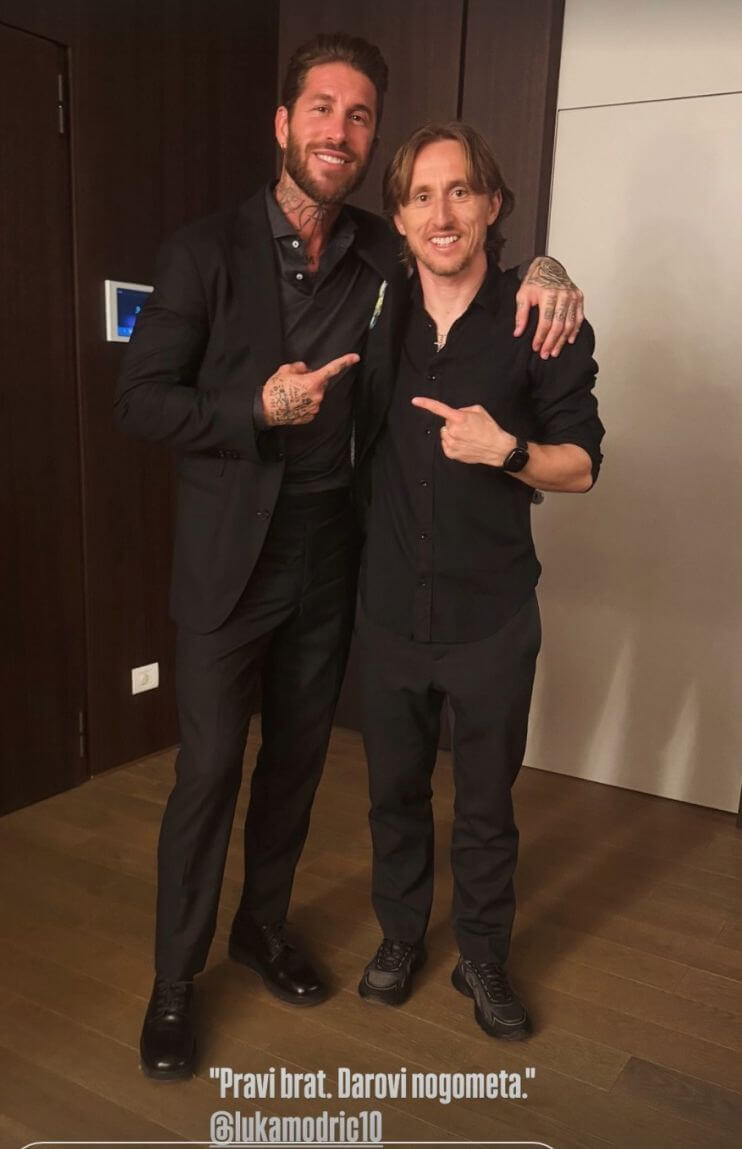 Ngày 10/3, tình bạn lâu năm lại được thể hiện! Ramos đã đăng lên mạng xã hội bức ảnh chụp cùng Modric. Anh có mặt trực tiếp tại trận Derby Milan để cổ vũ cho Modric. Chú thích ảnh: “Anh em thật sự, món quà của bóng đá.” Người hâm mộ không ngớt bình luận, tỏ ra ghen tỵ với tình bạn bền chặt này và cảm nhận được hơi ấm và tình bạn mà bóng đá mang lại.