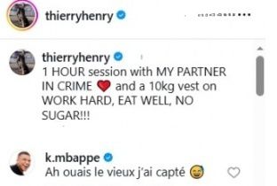Ngay lập tức, bức ảnh thu hút sự chú ý, đặc biệt là Mbappé – ngôi sao của Real Madrid – cũng vào bình luận trêu: “Được đấy lão già, cháu hiểu rồi.” Henry hài hước trả lời: “Tự giác.” và kèm theo một trái tim, cho thấy cả hai đều rất nghiêm túc với việc rèn luyện và tự kỷ luật.