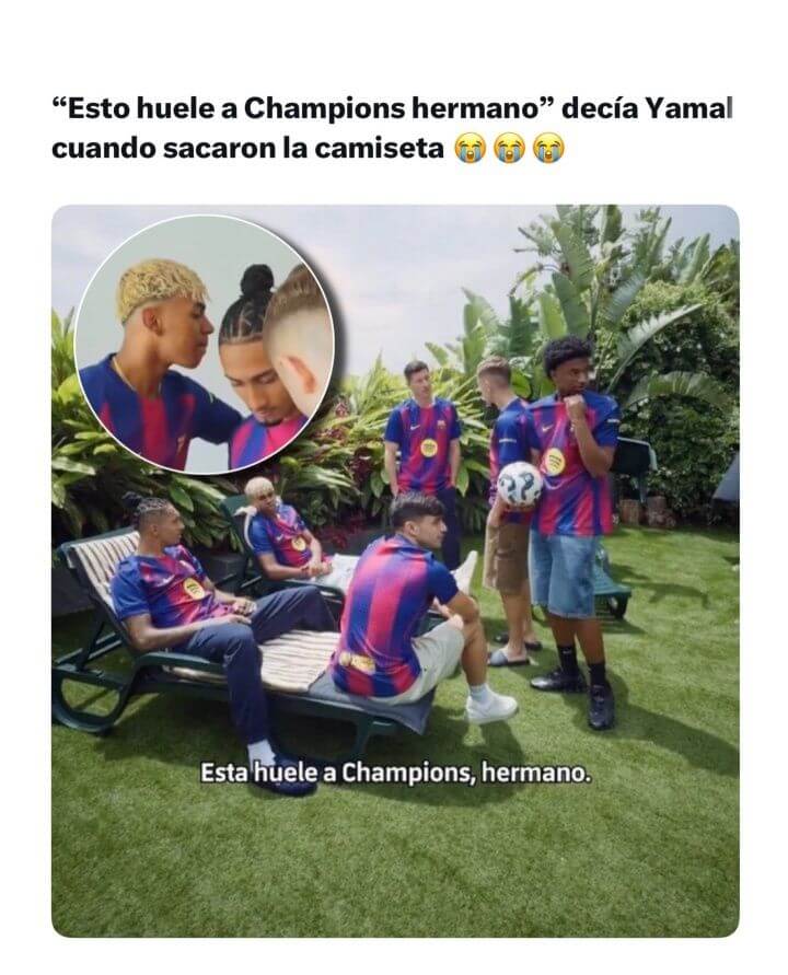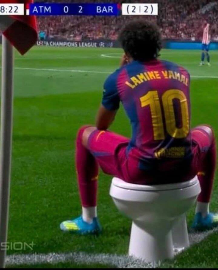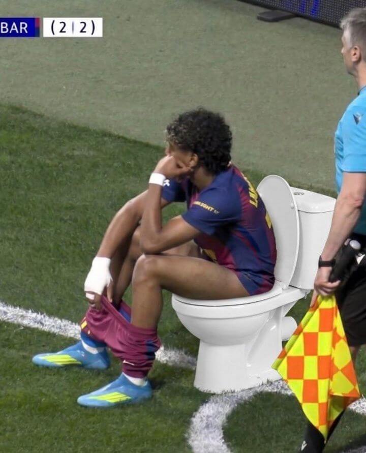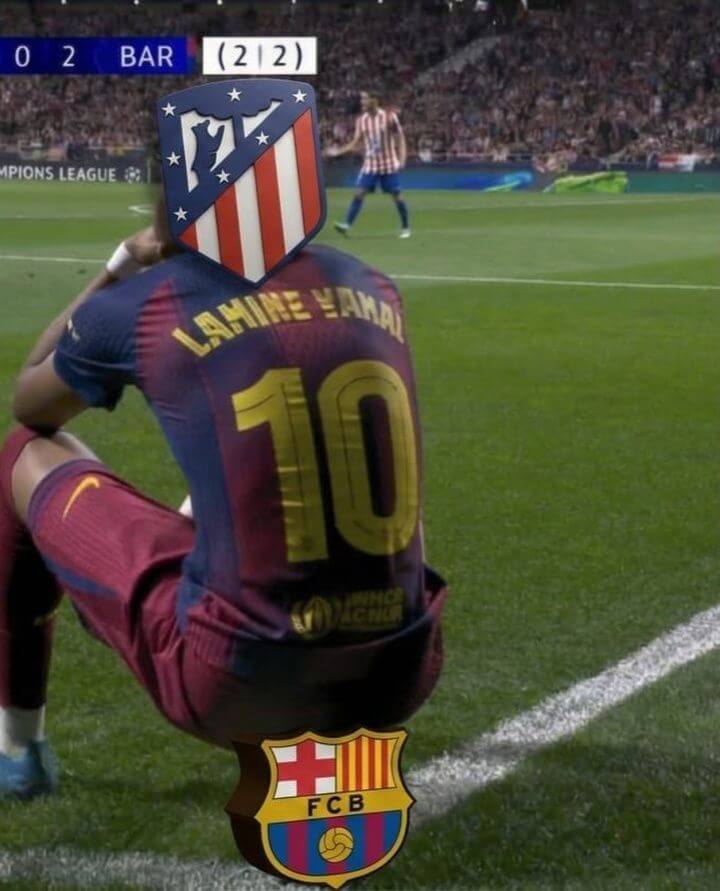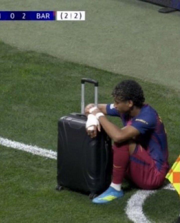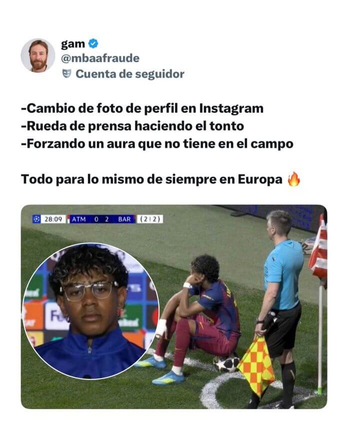 Phút 29, Yamal ngồi ở khu vực cột cờ chờ bóng khi Fermín đang được chăm sóc, trông như đang suy tư. Hình ảnh này đã bị biến thành hàng loạt meme trong bài đăng.